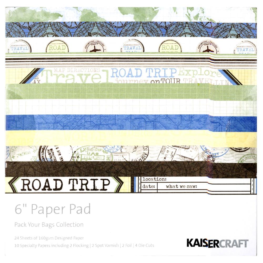 KAISERCRAFT-Pack Your Bags Paper Pack. This package contains one 6x6in pad of twenty-four designer sheets of photo friendly cardstock with flock and embossed accents: two each of ten designs along with four sheets of die-cuts. Imported.
